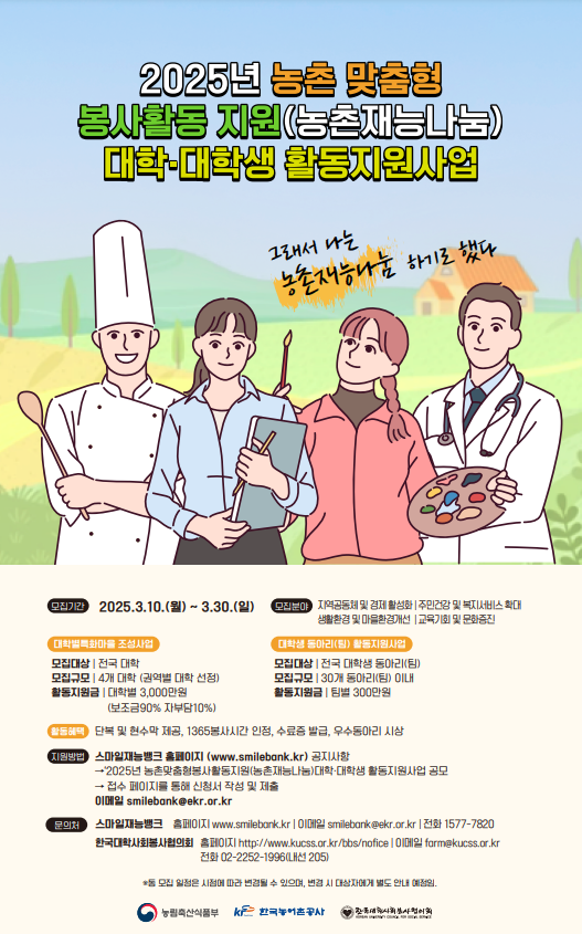 2025년 농촌 맞춤형 봉사활동 지원 (농촌재능나눔) 대학.대학생 활동지원사업
